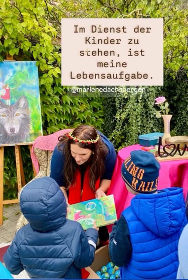 Marlene Dachsberger liest aus „Die Fee Rosa und der magische Platz“ an Orten voller Energie. Von der Windmühle Retz über das Schloss Mühlbach, Ferienspiel Hohenwarth, bis zur Volksschule Japons.